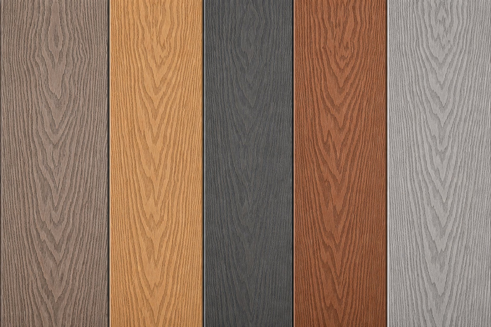 Close-up of a sleek WPC fence panel showing detailed wood grain texture and natural color blending.